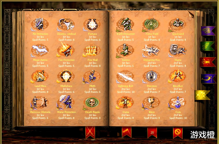 有了灵球,魔法强了不少 水系魔法: 寒冰霹雳:威力略逊于霹雳闪电,但在攻击火元素、烈火元素时有特殊效果。 寒冰魔环:伤害与连珠火球相当,同样在对付火元素、烈火元素时效果显著。 总而言之,一个6点法力的副将,带领城内炮灰兵种,借助魔法获取宝物、积累经济与兵力,有无灵球参与,效率差距极大。因此,无论获得哪一系灵球,都值得尝试升级2、3级魔法塔,解锁二级的霹雳闪电、寒冰霹雳、死亡波纹、烈火魔墙,以及三级的亡灵杀手、连珠火球、寒冰魔环等强力魔法。 |