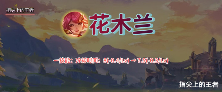 1技能的冷却时间从8-6秒,调整为7.5-6秒,就是稍微加强了一下1技能前期的使用频率,也就是增加了跑图的效率,虽然是蚊子腿,但花木兰能加强,这也算是挺意外的事情了。 不知火舞