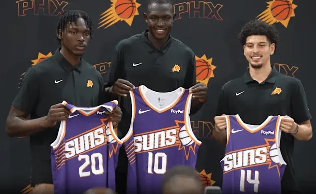 目前阵容唯一新援是第17顺位的琼·贝林格——未来如何未知。但明尼苏达的“2025-26休赛期”其实在2024年就完成了:他们积极向上交易得到迪林厄姆,又在首轮末选中小特伦斯·香农。森林狼早知道会失去亚历山大-沃克,所以本赛季不会再踩第二土豪线(他们还有一次机会,之后首轮签将跌至第30)。 他们提前为“失去沃克”做准备:保留其他核心。但沃克的替代者(迪林厄姆、香农)能否填补空缺?能否挤占老康利的出场时间?现在难下结论——我们只能“观望”。 笔者建议其他管理层更激进(参考雷霆暴露的漏洞),但说实话,若森林狼不操作,可能是没机会。他们本可以拥有凯文·杜兰特(若他想加盟),但这是“不可控因素”。康纳利向来愿意“赌大”,未来1-2年必有动作(比如追求达米安·利拉德)。森林狼是当前“无长期首发控卫解决方案”的最佳球队,经济状况让他们无法直接签下利拉德级别球员——若能“白嫖”,将是巨大胜利。目前评级“平均”,但相信管理层能解决问题。 太阳:C-