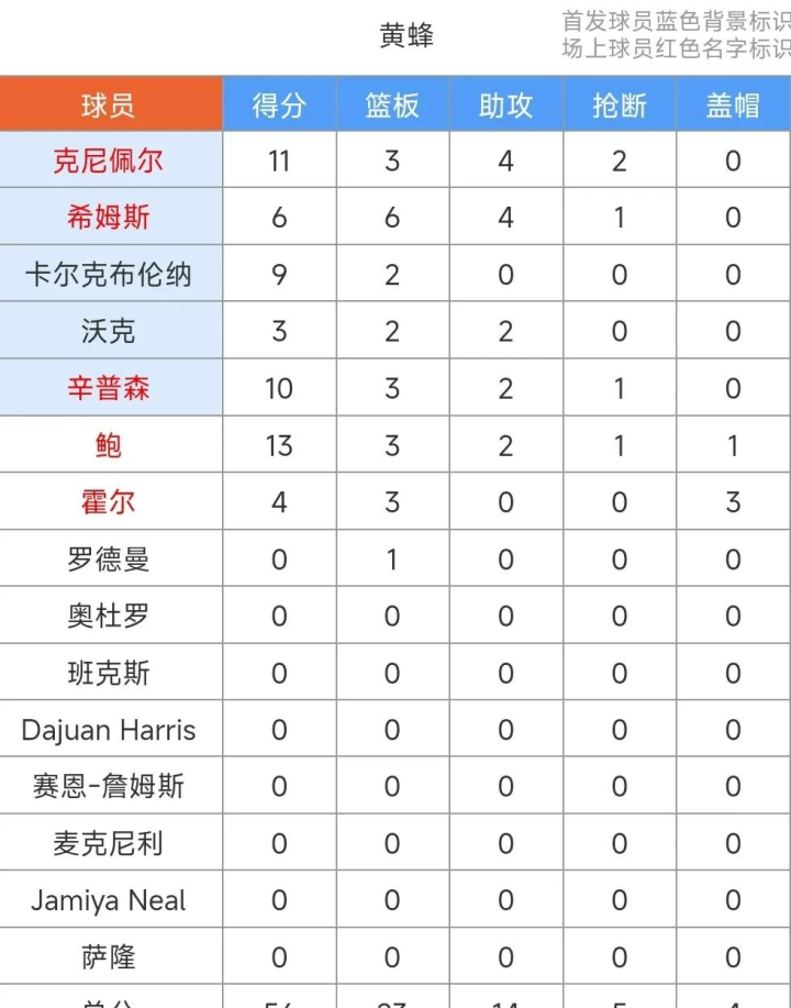 第二节继续,霍尔大力水手爱灌篮暴扣得2分,尼尔森制造犯规罚球两罚全中得2分,克尼佩尔滑翔劈扣也进2分,大卫.琼斯博得杀伤罚球还击2分,霍尔冲击内线双手灌篮得2分,黄蜂队继续28:25领先!米尼克斯罚球两罚全中添2分,希慕斯同样罚球还击2分。两队陷入混战状态,你来我往杀的激情四射,上半场结束马刺队34:56落后黄蜂队22分,的确让人吃惊!