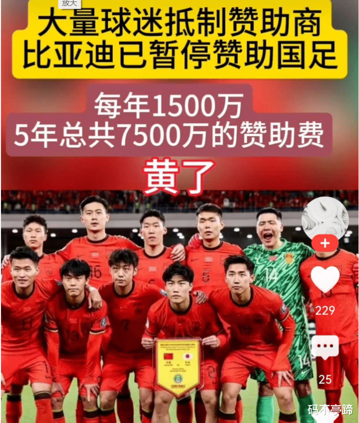 你赞助商不是厚着脸皮硬要赞助国足吗?那我们就呼吁网民全面抵制你们,因为你们在赞助“辱华组织”,是要接受网民的惩罚的。还是比亚迪聪明反应快,马上宣布暂停赞助国足的7500万资金,可见舆论起到了初步效果,接下来肯定会有越来越多的赞助商退出,否则等待他们的将会是更加疯狂的抵制。