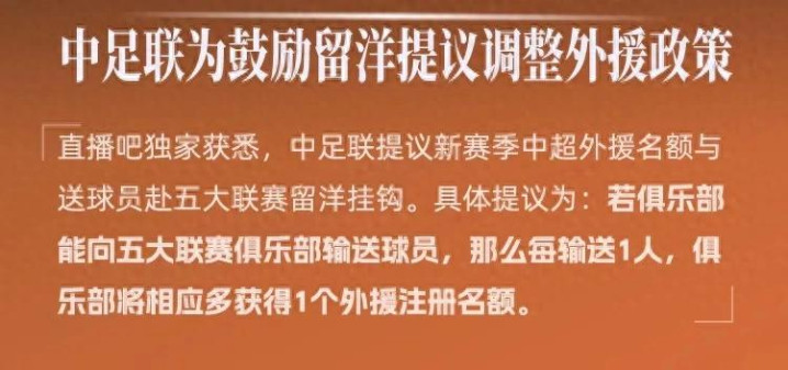 | 中国足球反腐已经过去了一段时间,以前中国足协很多为了利益而做了违法乱纪的事的人也已经受到相应的处罚。不过从现在来看,中国足球依然没有什么改变,让人依然看不到未来。对强队依然赢不了,对弱队依然不好赢。近日,有媒体报道称,为了长远的中国足球发展,中足联提议了一项新政策,就是凡有球队有留洋人员的话,那么该球队在中超联赛中将获得多一人的外援注册名额。