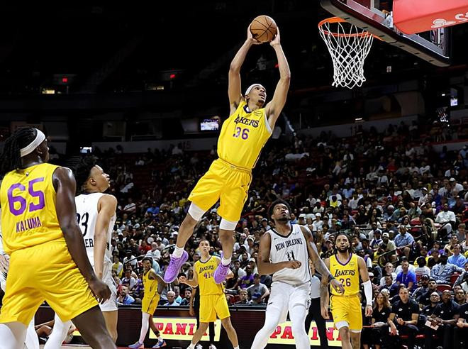| 在此前的一场NBA拉斯维加斯夏季联赛中,洛杉矶湖人以94比81战胜了新奥尔良鹈鹕。本场比赛后,湖人取得了拉斯维加斯夏季联赛中的首场胜利,目前战绩为1胜1负,而鹈鹕则是遭遇了夏季联赛开始后的两连败,目前战绩为0胜2负。